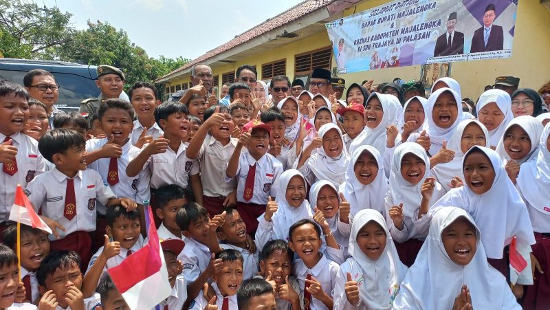 MAJALENGKA, PelitaJabar – Pemkab bersama Baznas Majalengka menyalurkan bantuan 28 set meja dan kursi (meubelair) untuk SDN Trajaya III, Desa Palasah, Kecamatan Palasah, Selasa 5 Agustus 2025.