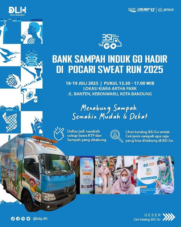 BANDUNG, PelitaJabar – Jaga lingkungan tetap bersih dan nyaman, Dinas Lingkungan Hidup (DLH) Kota Bandung menghadirkan layanan Bank Sampah Induk (BSI) Go di Pocari Sweat Run 2025.