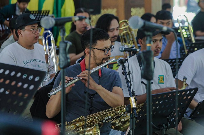 “Biasanya alat musik tiup kita dengar di marching band, tapi kali ini dibawakan sambil duduk dengan format big band,” jelasnya.