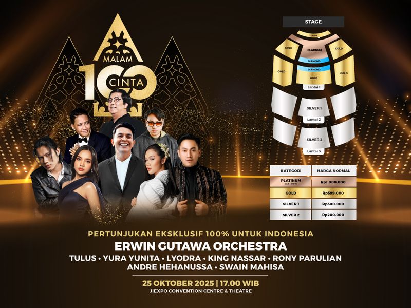 Tiket dapat diperoleh secara online melalui Goers di https://goers.co/SMARTFREN100cinta.
